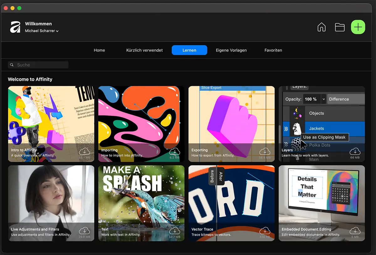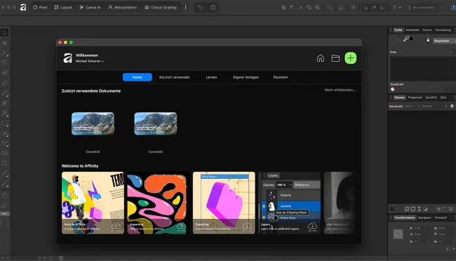 Affinity hatte ich als Alternative immer schon im Auge und jetzt habe ich nach der Übernahme von Affinity durch Canva deren Canva Affinity Suite mit Designer und Puplisher heruntergeladen.