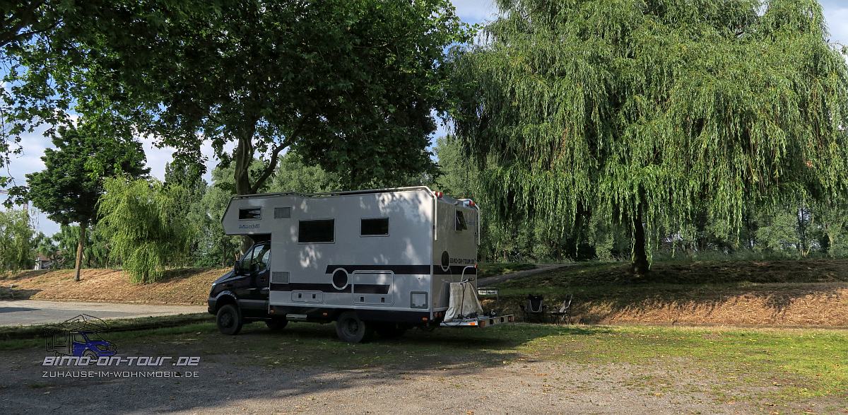 Auf dem Stellplatz wird längs geparkt, warum dann Flächen gesperrt wurden, andererseits aber 3 Wohnmobile eng aneinander stehen konnten, erschließt sich mir nicht. Aber eigentlich kapiere ich eh nicht, warum Wohnmobil-Stellplätze gesperrt wurden.