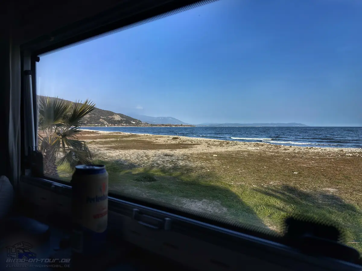 Wir hatten den gar furchtbaren Moloch Thessaloniki im Modus „bloß schnell weg hier“ zügig umfahren und bei Asproválta ein wunderbares Plätzchen in der grünen Natur mit Palmen am Strand gefunden.