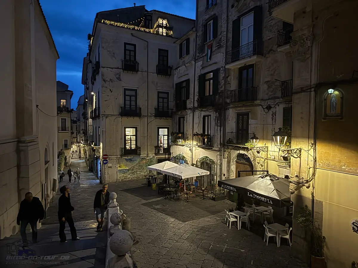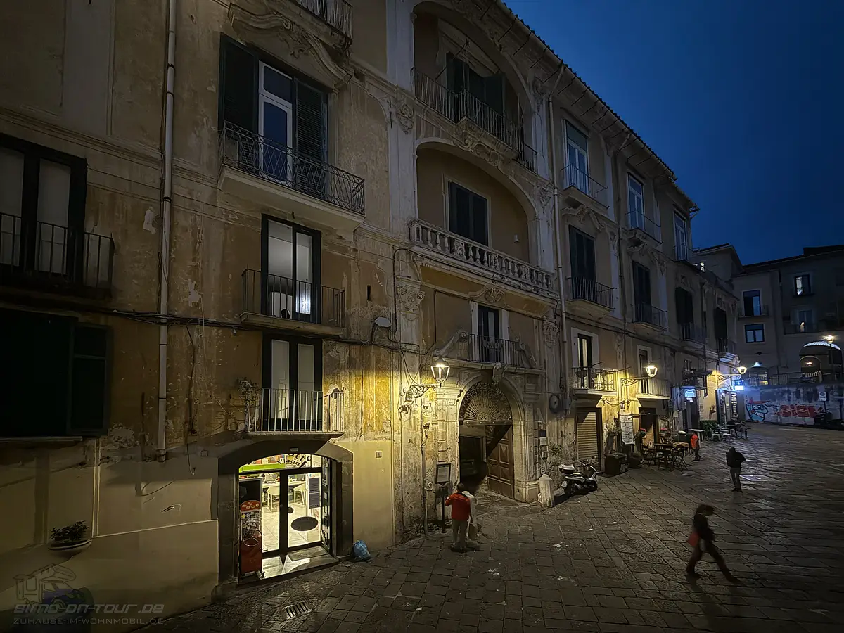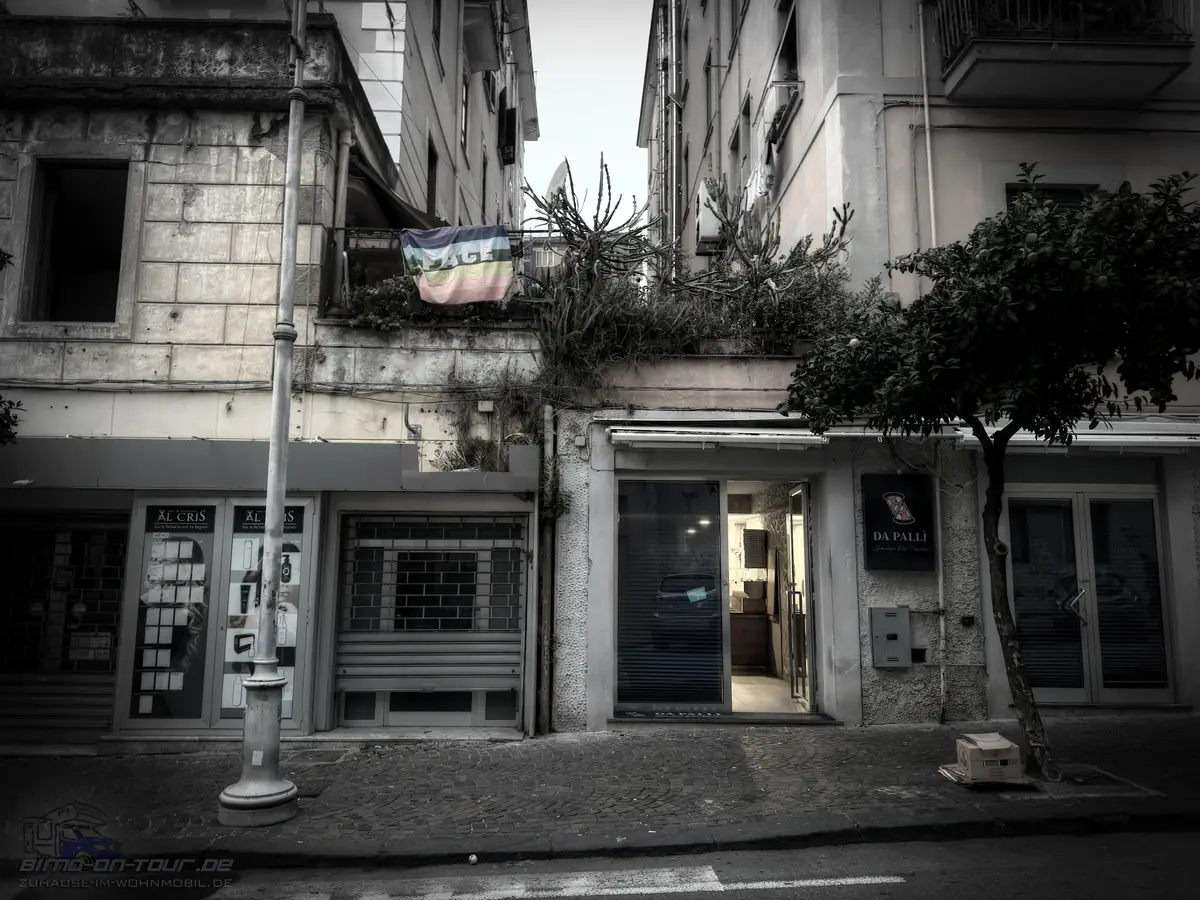 Deshalb haben wir uns in Salerno auf einen zwar nicht wirklich schönen, aber mit z.Zt. günstigen 10€ praktischen Stellplatz niedergelassen. Sogar das Meer liegt vor der Haustüre.
