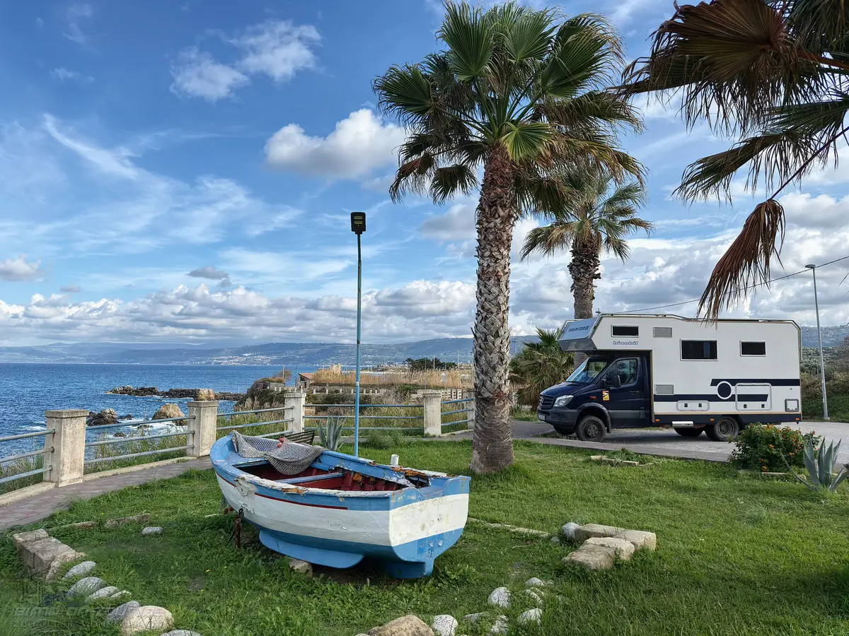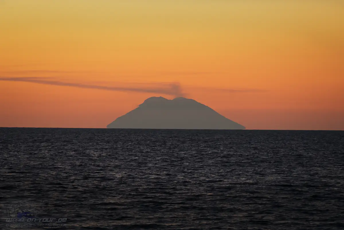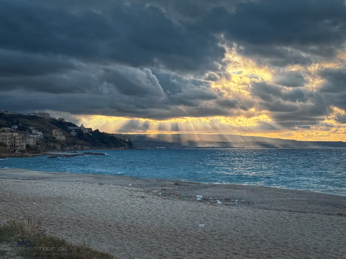 Nach kurzer Sucherei (und ein paar skeptischen Runden um ein paar nicht ganz so paradiesische Ecken) entdeckten wir unseren Traumplatz: Direkt am Meer, mit Aussicht auf Nicotera welches hoch oben auf dem Berg liegt, dem Stromboli und sogar auf den rund 116 km entfernten Ätna.