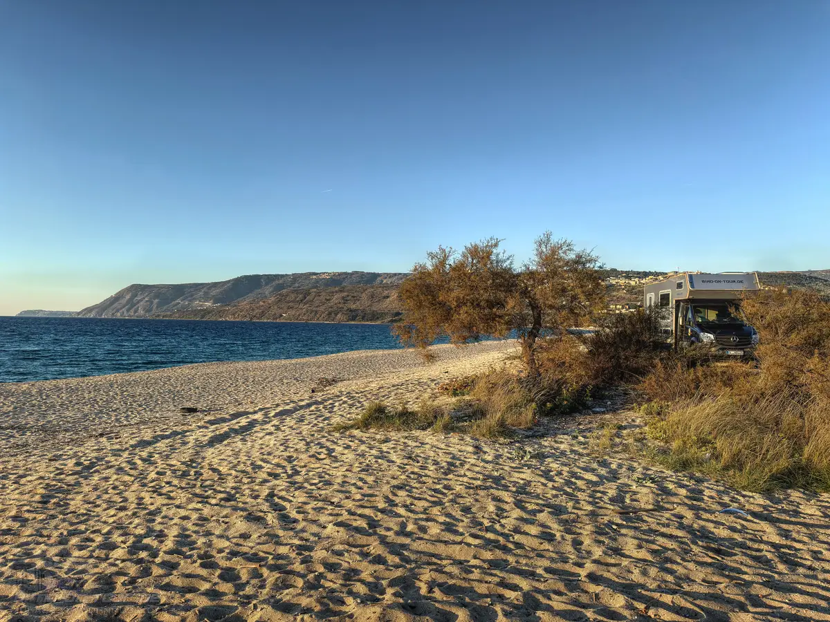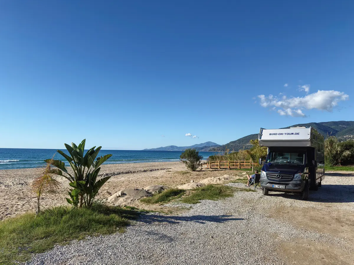 Und siehe da, 30 Kilometer südlich bei Nicotera fanden wir sie – eingebettet zwischen einem Pinienwald und einem scheinbar ewig weiten Sandstrand.