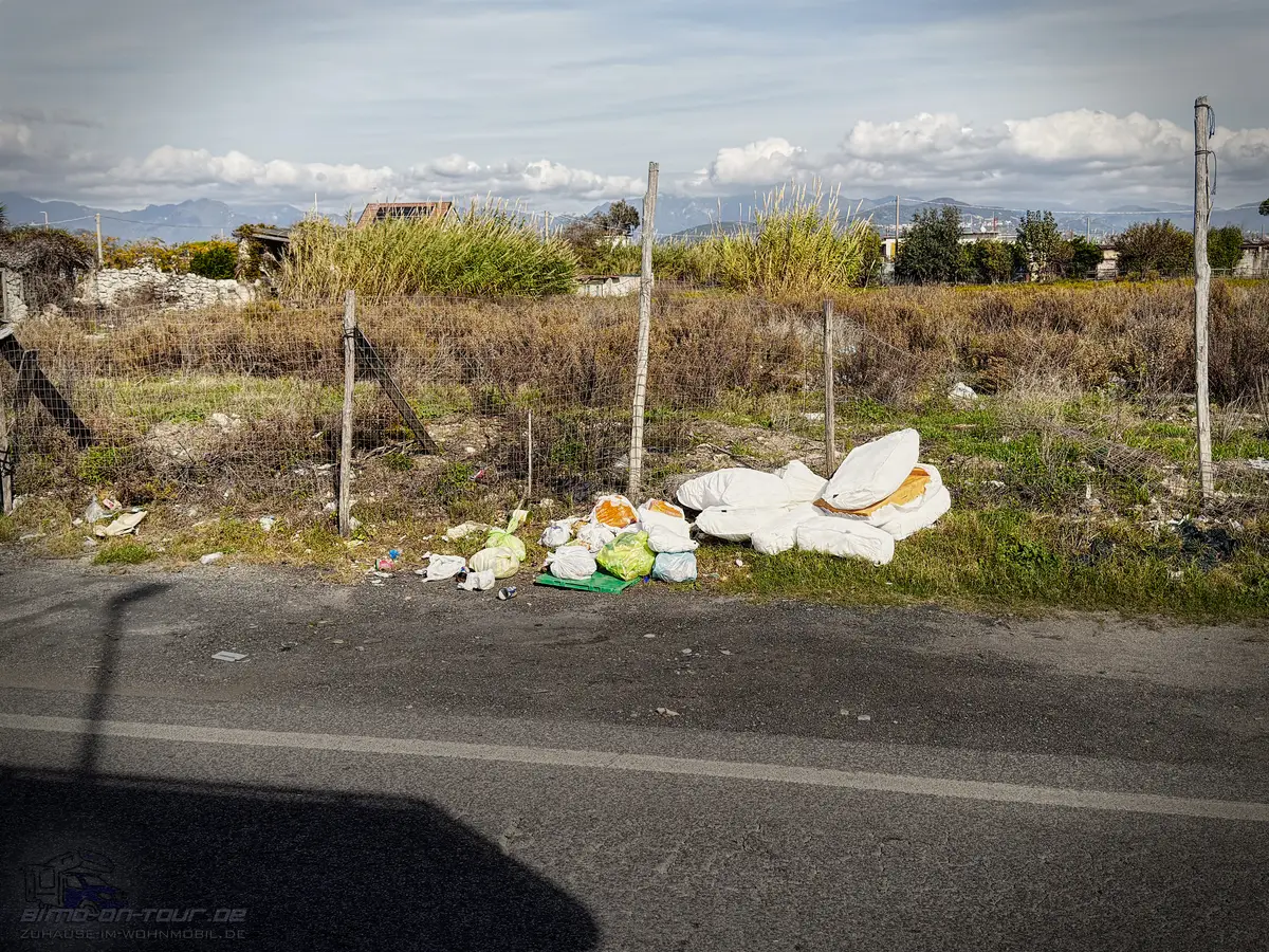 Schon kurz hinter unserem Stellplatz begann die Welt, die wir eigentlich nicht sehen wollten. Für die Region südlich Salerno gibt es für uns nur ein Wort: Furchtbar!