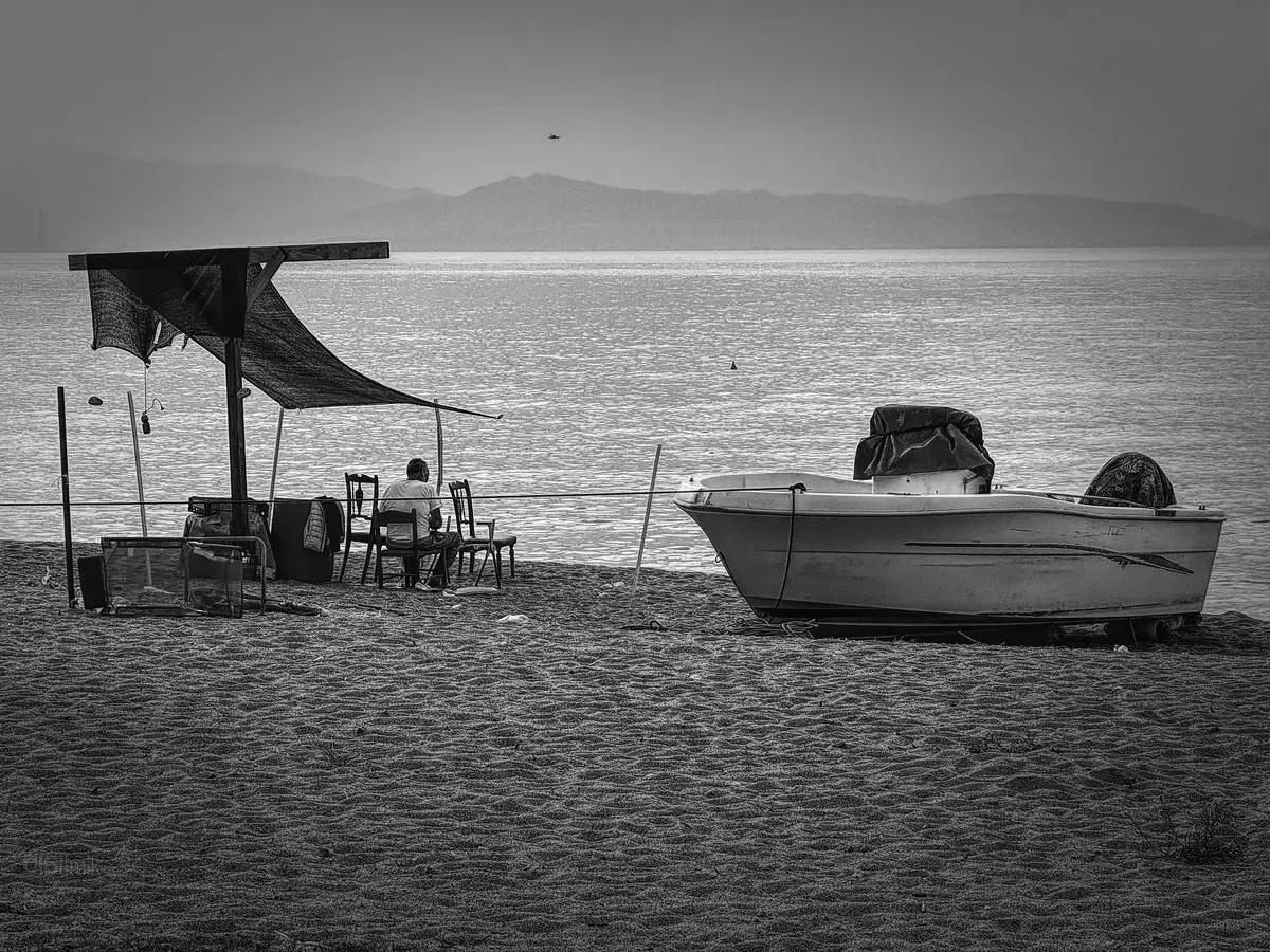 Nördlich von Pizzo haben wir zumindest ein halbwegs nettes Plätzchen mit Aussicht aufs Meer gefunden. Damit wir uns sicher fühlen, sogar mit wuffendem Bewacher.