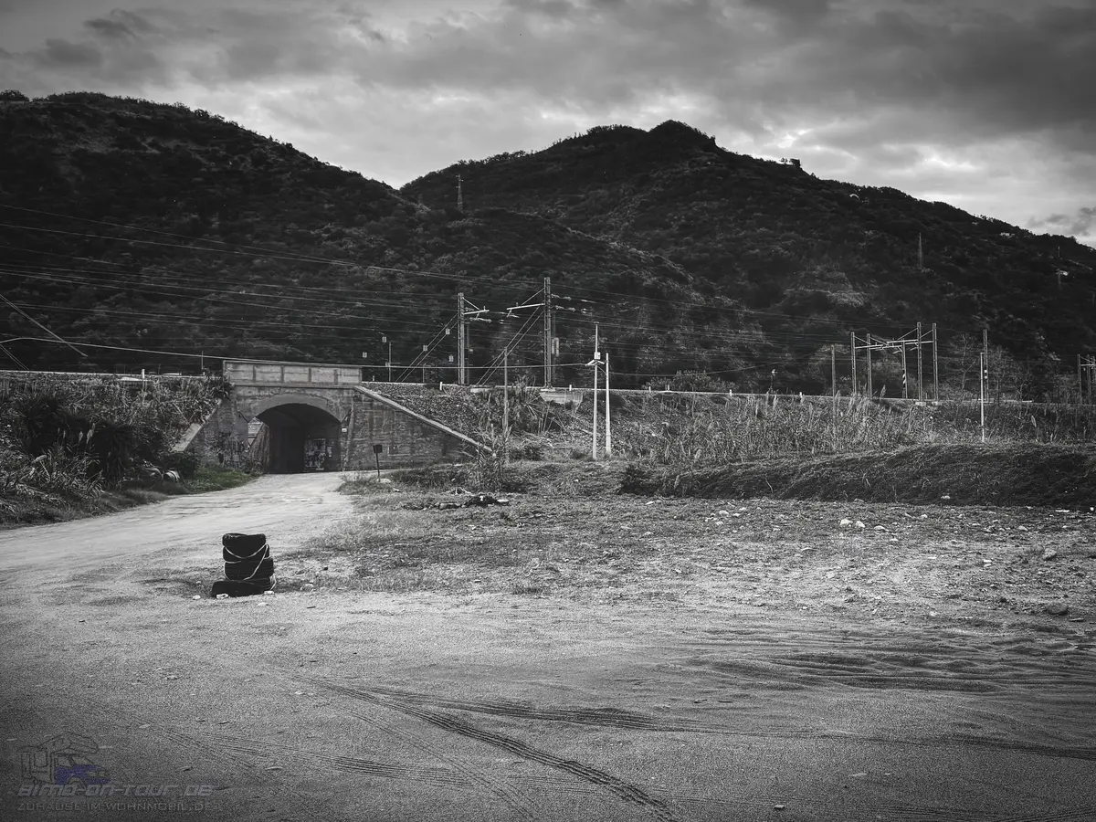 Verbote sind für mich und den Italienern ja eher Empfehlungen, aber ich kontrolliere die Strecken immer über Google StreetView und was ist? Die Straße ist mit dicken Betonklötzen blockiert, so dass lediglich PKW hindurch passen.