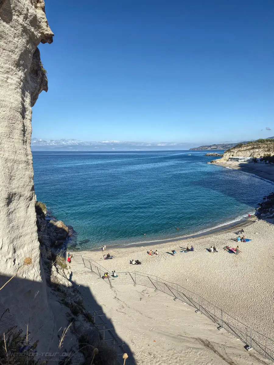 Entlang der wunderschönen Küste haben wir nach einer Expedition von 15 km die hoch auf dem Plateau gelegene Stadt und Badeort Tropea erreicht.