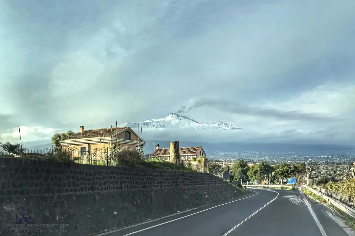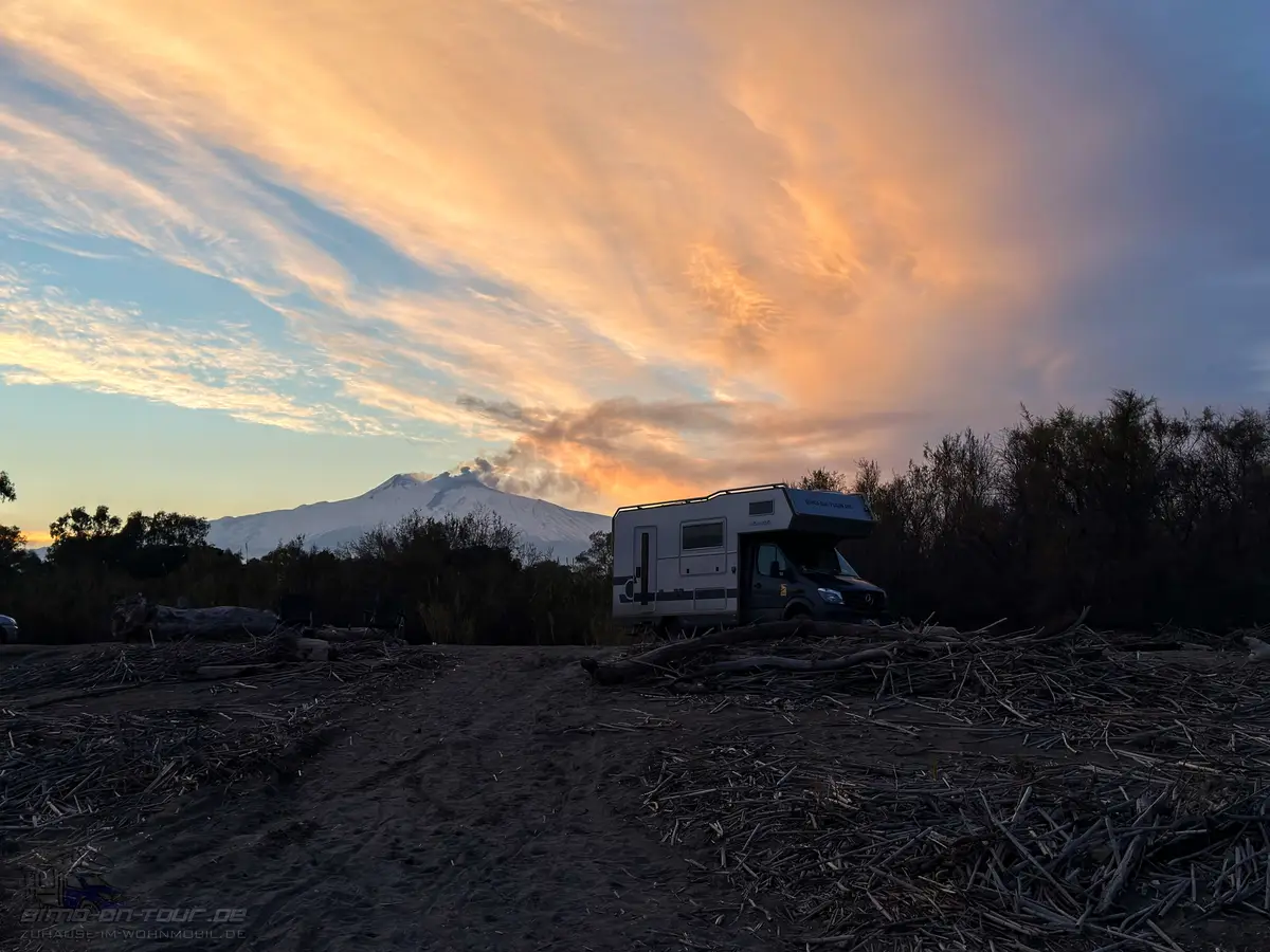 Entlang der weiteren Route hatten wir keine netten Nachtplätze gefunden, oder anders gesagt – unser Bimo ist für manche Orte ungefähr so geeignet wie ein Elefant in einen Porzellanladen. Also sind wir völlig entspannt über die Autobahn direkt bis Catania durchgerollt.