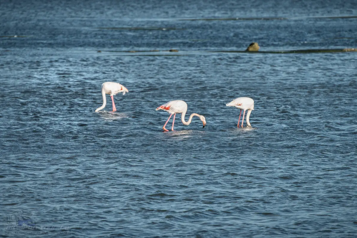 Zunächst sind wir weiter die Salinenstraße am Meer entlang gefahren und kamen dann den Flamingos wenigstens halbwegs näher.