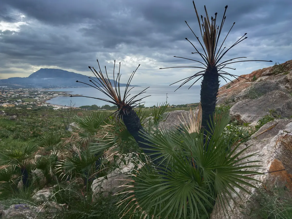 Da ich bekanntlich eine gewisse Verbotsresistenz pflege, habe ich mich trotzdem zu einer kleinen Wanderung im Cofano-Naturschutzgebiet aufgemacht. Zwischen bizarren Felsen und an den Stämmen verbrannten Palmen kam ich mir vor wie in einer anderen Welt.