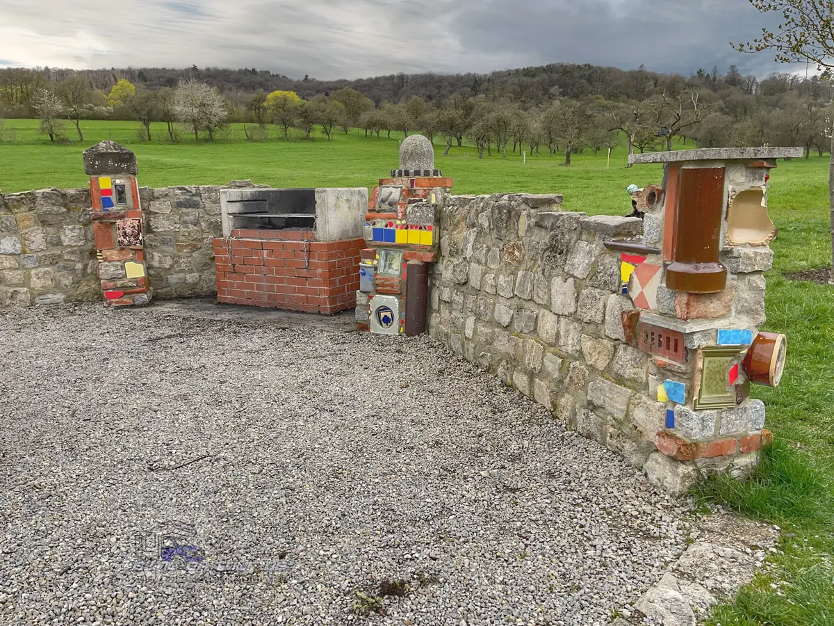 Ein Labyrinth, überall kleine Kunstwerke, Rast und schöne Grillplätze und in der Umgebung Tafeln die auf die Natur, Historie etc. hinweisen.