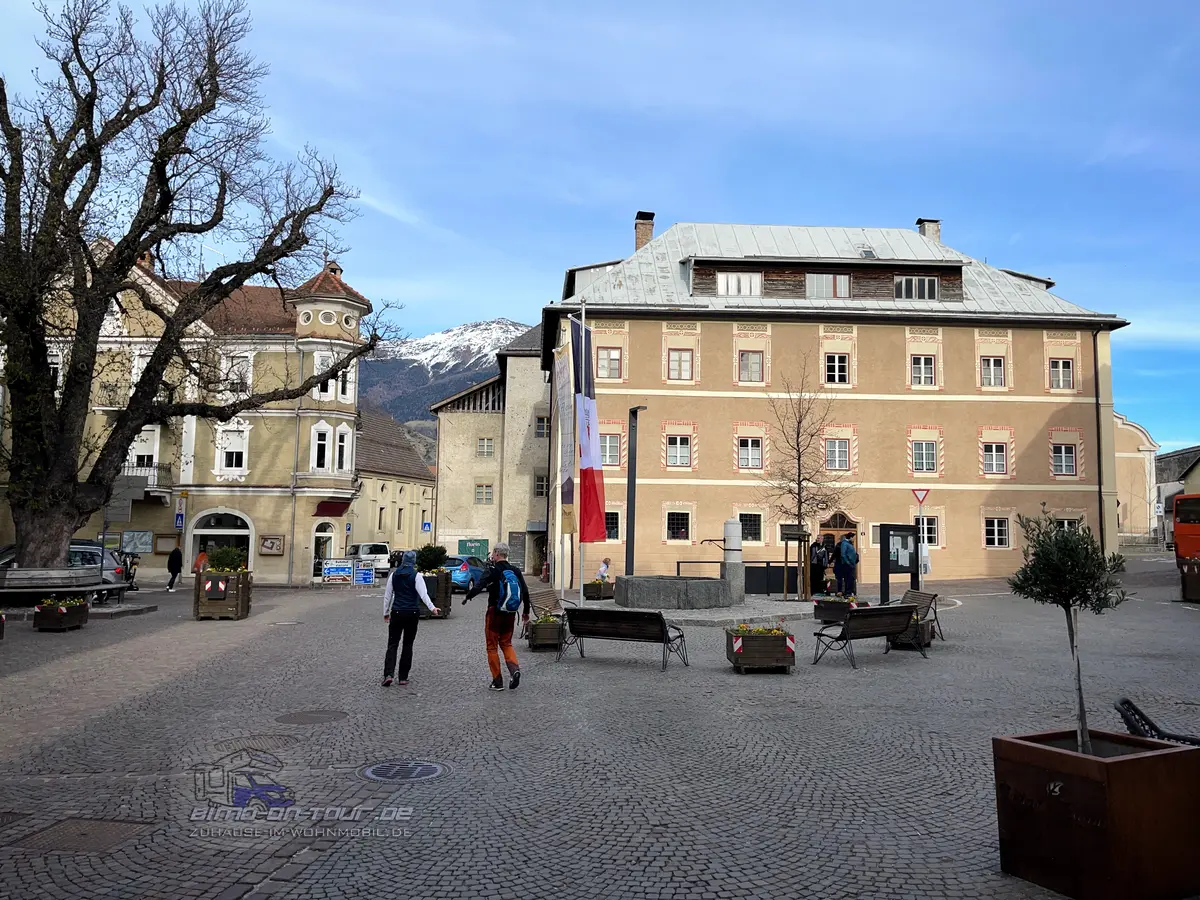 Am Ostermontag war das einerseits keine so gute Idee, denn die Parkplatzsuche gestaltete sich mit dem dicken Bimo schon ein wenig schwierig. Andererseits sprühte die Stadt über vor Leben. Planschende große und kleine Kinder mit den Familien in der Etsch und die Cafés waren voll, sprich, pure Lebendigkeit.