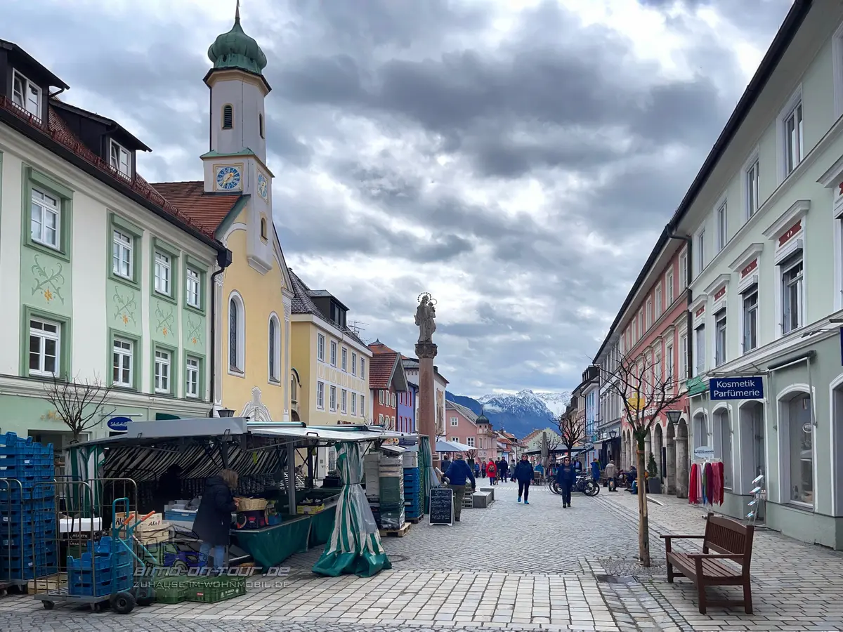 In Murnau fanden wir dann einen zwar nicht so schönen, aber praktischen und kostenlosen Übernachtungsplatz in der Innenstadt. Einen großen Dank an die Stadt Murnau! Ein Parkplatz mit Parkflächen für Wohnmobile und nicht in P4N verzeichnet, na so was. Auf Grund der Lage fühlten wir uns wieder an unsere Walmart-Übernachtungen in den USA erinnert 🙂